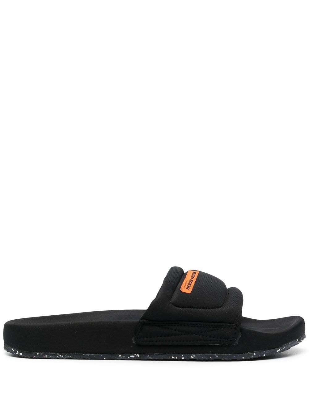 Heron Preston logo patch flat slides